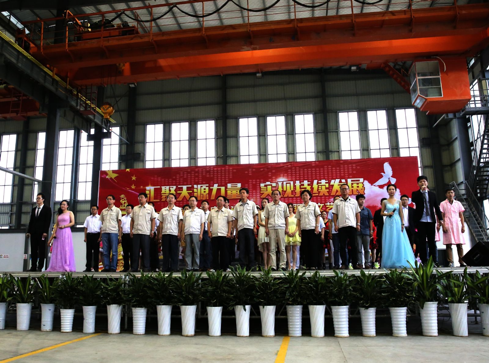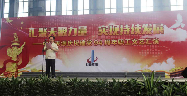 為慶祝建黨94周年,充分展現公司成立以來的輝煌成就、廣大干部員工干事創業的精神風貌,弘揚正能量,6月27日上午,由中鋼天源黨委主辦,黨群工作部、工會、團委協辦的“匯聚天源力量、實現持續發展——中鋼天源慶祝建黨94周年職工文藝匯演”在公司新區隆重舉行。公司領導班子及高管,各單位、各部門助理以上中層干部,退休老同志代表,在公司的人大代表、政協委員,公司第二屆職代會、工代會代表,公司成立以來在各條戰線上獲得榮譽表彰的先進模范人物代表共200余人觀看了演出。